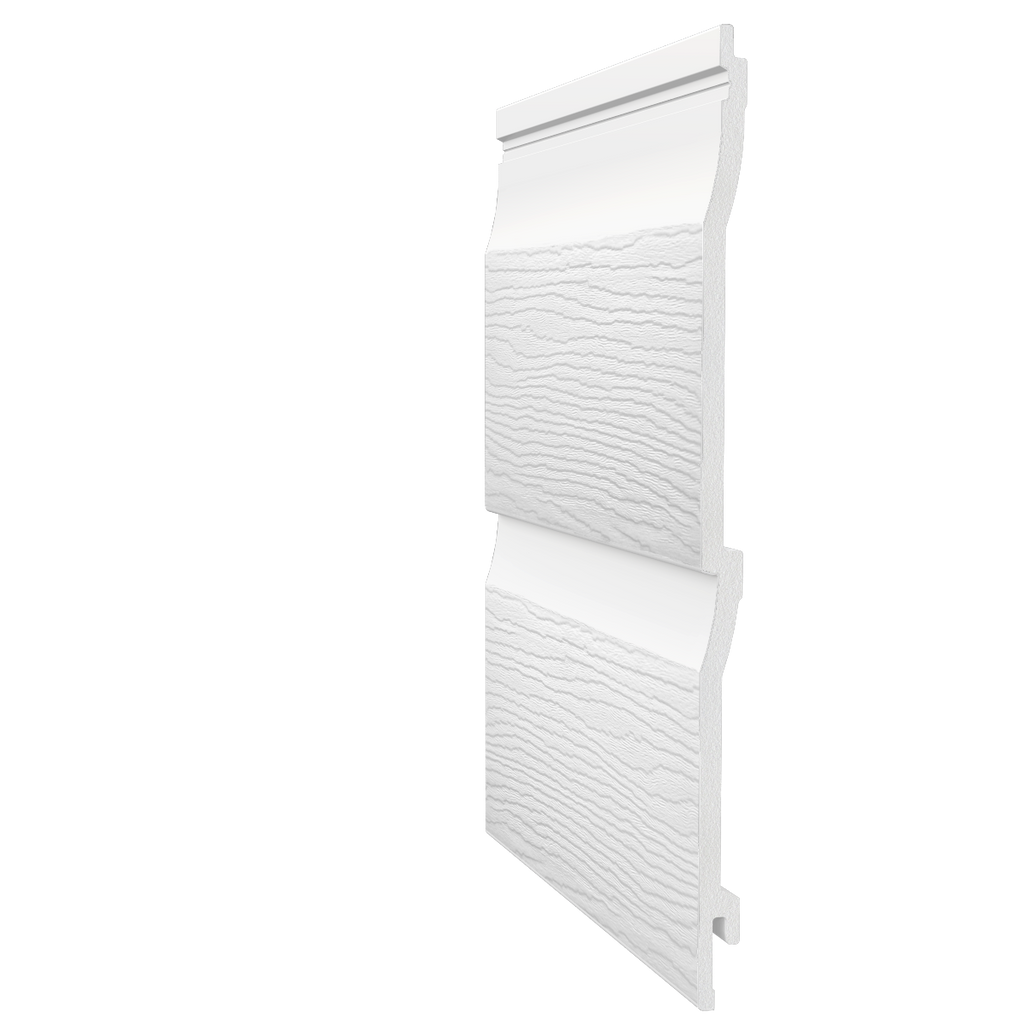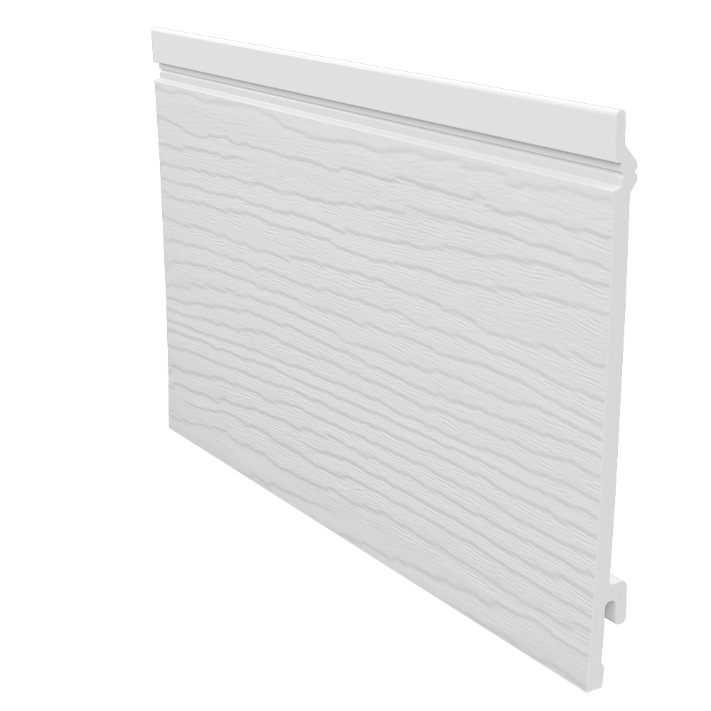 The standard double shiplap board, 300mm wide and 7mm thick, is ideal for small areas such as an external feature wall and is available in the following colours: white, pale gold and sand.
